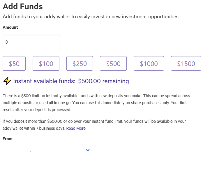 Then you will need to connect your bank account to transfer funds into your Addy wallet. This was a major sticking point for me as I’m super nervous about connecting my account so I spent a bunch of time reading up on the owners of the business, where they are located, background etc.