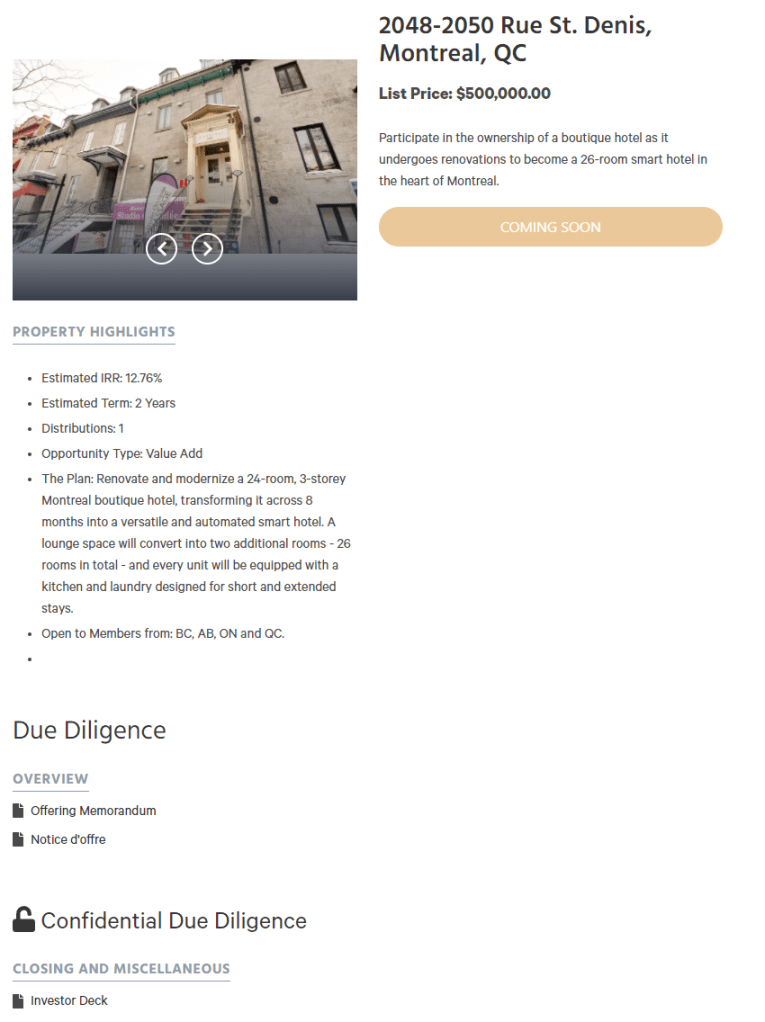From this screen, you can read more about the offer, dig into the Offering Memorandum, flip through the investor deck and if you so choose – invest in the property.